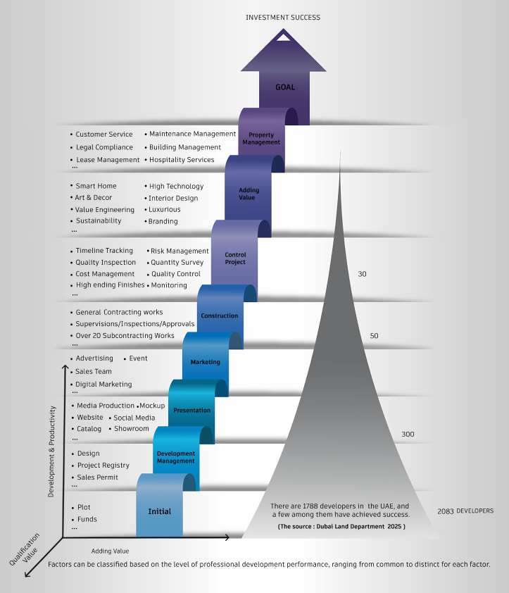 • Most developers fail to meet their commitments because they lack full control over key service providers involved in property development—such as design, contracting, real estate sales, marketing, and rental management.