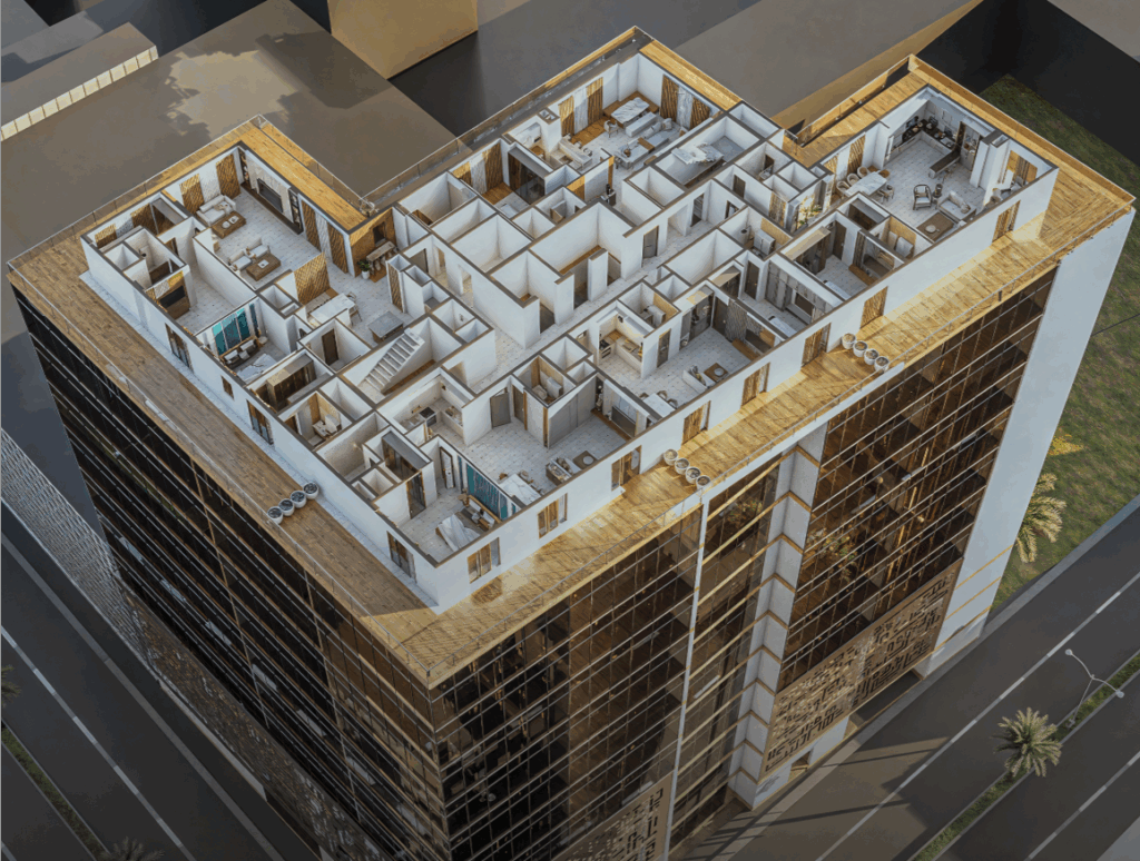At present, the structural works have been completed, and the project has entered the interior execution phase. Partitioning and the MEP team are carrying out works in the residential floors. The facade team is working on the building’s exterior. Meanwhile, the interior design and carpentry teams are designing and constructing the cabinets and interior decor.